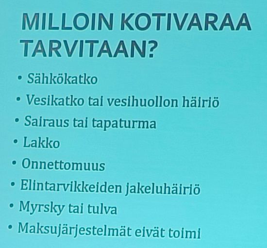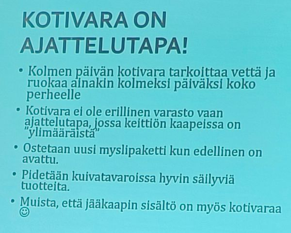 Keski-ja Etelä Pohjanmaan Martat ry:n toiminnanjohtaja Tuija Biskop tuli meille kertomaan 72 tunnin varautumisesta kriisitilanteisiin ja tämä olikin ajankohtainen asia varsinkin Hannes-myrskyn jälkeen.
