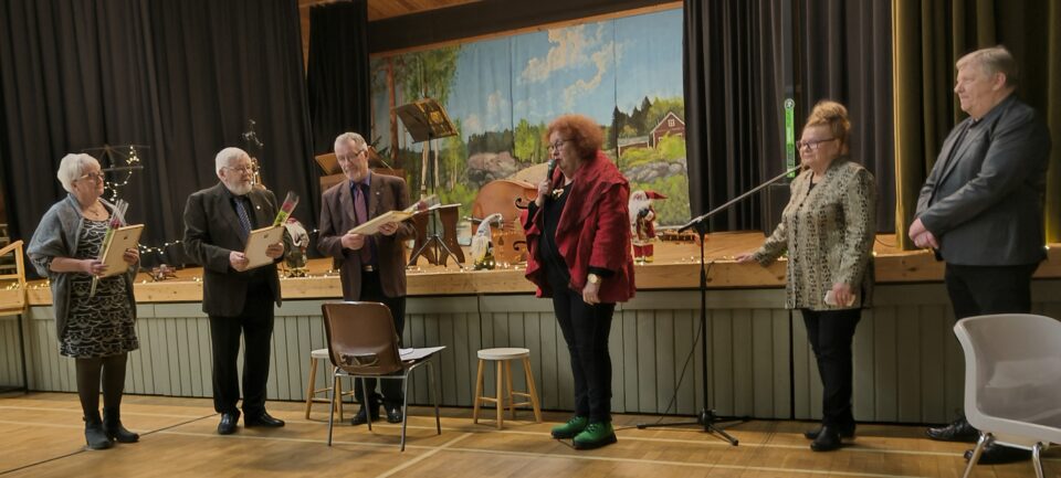Lähes 90 yhdistyksen jäsentä kokoontui Pulkkisen nuorisoseuralle. Jouluisesti koristeltu sali loi juhlatunnelmaa ja emäntämme Maija Hohenthalin keittämä joulupuuro lisukkeineen odotti tulijoita. Päälle juotiin vielä torttukaffit.